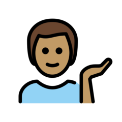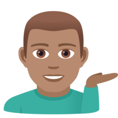 | Codepoint | U+1F481 1F3FD 200D 2642 1F481 - 💁 ကူညီပါရစေဟု လက်ဟန်ပြနေသူ 2642 - ♂ အဖိုသင်္ကေတ |