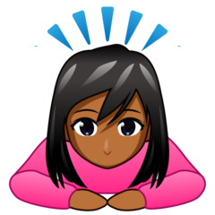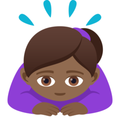 | Codepoint | U+1F647 1F3FE 200D 2640 1F647 - 🙇 ဦးညွတ်နေသူ |